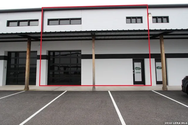 Property Highlights: Total Space: 2,100 SF Ground Floor + 700 SF Structural Mezzanine. Seamless Access: Dual 14' x 14' grade-level bay doors located at both the front and rear of the unit, allowing for effortless loading, ventilation, and vehicle rotation. Superior Parking: Exceptional accessibility with ample dedicated parking available at both the front and back of the building. The Mezzanine: A robust 700 SF upper level, perfect for a private office, luxury lounge, or high-capacity inventory storage. Strategic Location: High-visibility frontage on Texas Highway 46, providing easy transit for clients and logistics. Investment & Versatility: This unit is currently tenant-occupied, offering immediate utility or investment potential. Whether you are looking for a high-end "man cave," a sophisticated base for a service business, or a secure spot for an exotic car collection, Unit E02 provides the square footage and logistical ease to support it.